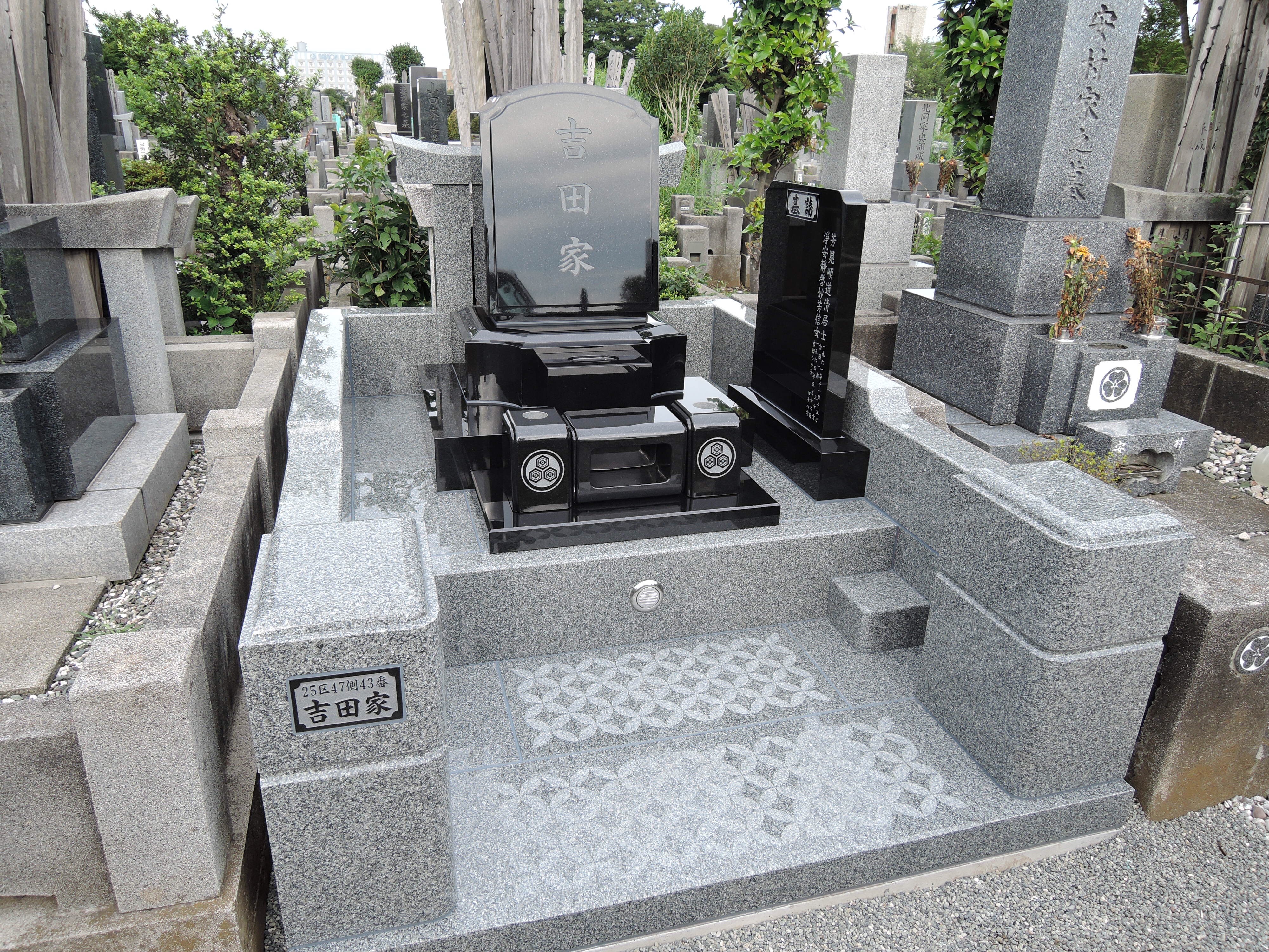 外柵は吸水率の低いインド産のアーバングレー、石塔はインド産の黒御影を使わせていただきました。